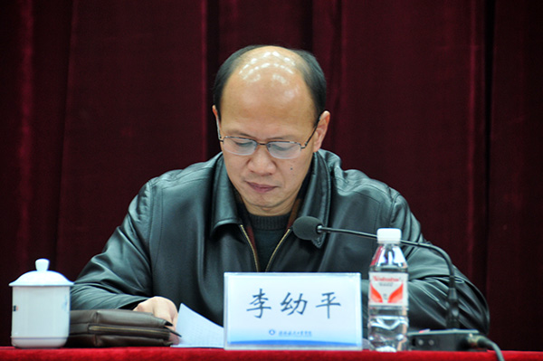 3月5日下午,我校在北校区电教馆召开党的群众路线教育实践活动总结会。党委书记李幼平作学校党的群众教育实践活动工作总结。自治区第十四督导组组长张敦对我校教育实践活动开展情况给予充分肯定,并就今后重点工作提出指导意见。校领导旷永青、罗延忠、郝德温、罗国湘、詹皖生、李智,正厅级调研员张昌年,全校副处级以上干部、教授及教代会代表、离退休老同志代表等参加了总结会。院长易忠主持总结会。